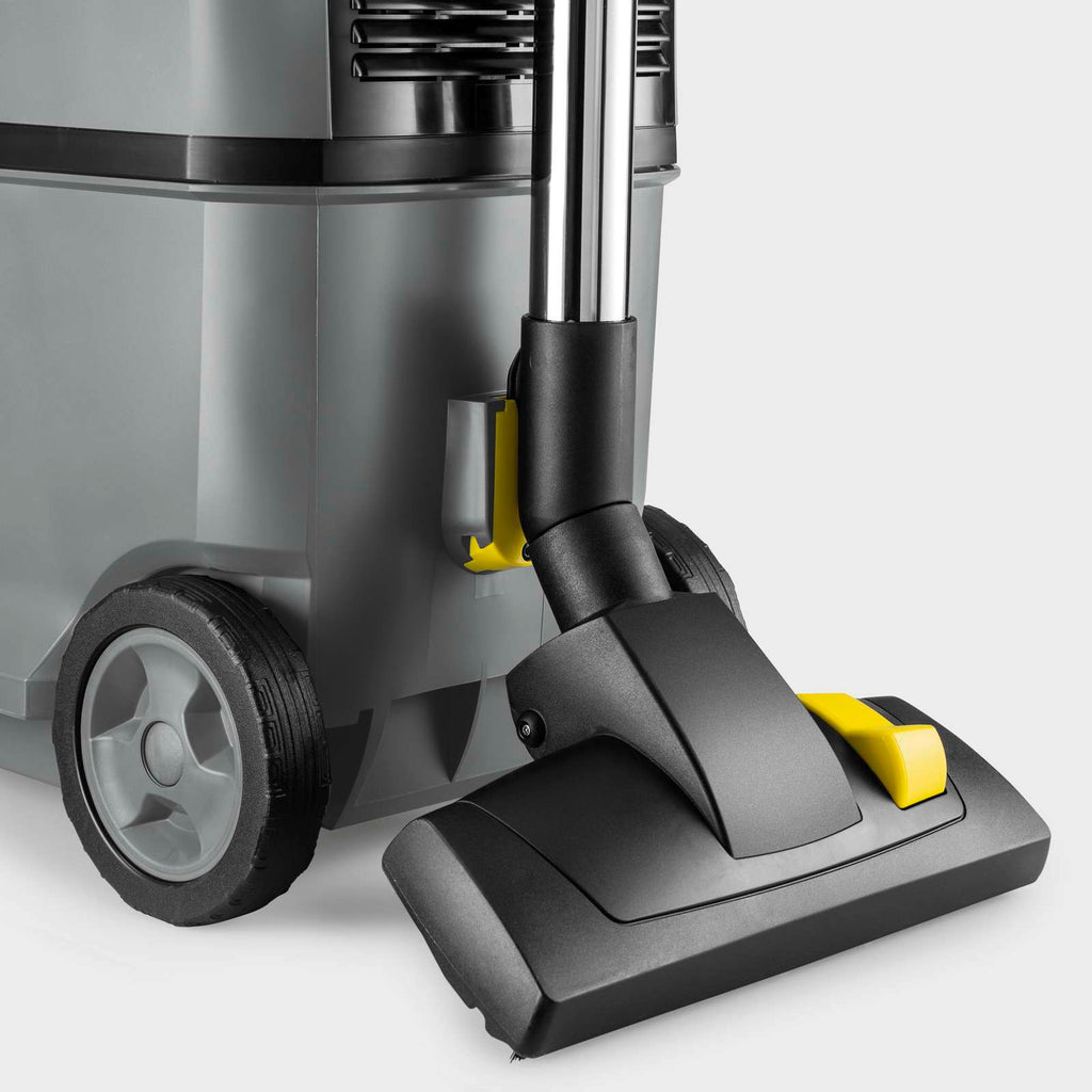 Ultra-silenzioso, resistente e sostenibile: l'aspirapolvere T 15/1, realizzato con il 45% di materiale riciclato*, offre un'eccellente potenza di aspirazione e un design ergonomico. Il nostro aspirapolvere T 15/1 è realizzato con il 45% di materiale riciclato* ed è quindi prodotto in modo da preservare risorse ed energia durante la produzione. Si distingue per l'eccezionale potenza di aspirazione, il funzionamento ultra-silenzioso, la sostenibilità, la robustezza e l'eccellente rapporto qualità-prezzo. La sua qualità è evidente in caratteristiche come il sistema di avvolcavo manuale, il robusto telaio, il paraurti, le grandi ruote e l'alloggiamento per gli accessori. Nonostante l'elevata potenza di aspirazione, il T 15/1 è estremamante silenzioso, solo 52 dB(A). Grazie a questo funzionamento ultra-silenzioso, può essere utilizzato in qualsiasi momento per le pulizie diurne e notturne in luoghi sensibili al rumore. L'aspirapolvere compatto è inclinabile e maneggevole e può essere trasportato in modo ergonomico e vicino al corpo grazie alla maniglia di trasporto. La capacità del vano è di 15 litri. Grazie al comodo porta accessori integrato, la bocchetta per interstizi in dotazione sarà sempre a portata di mano. È possibile acquistare un filtro HEPA 14 altamente efficace come opzione.