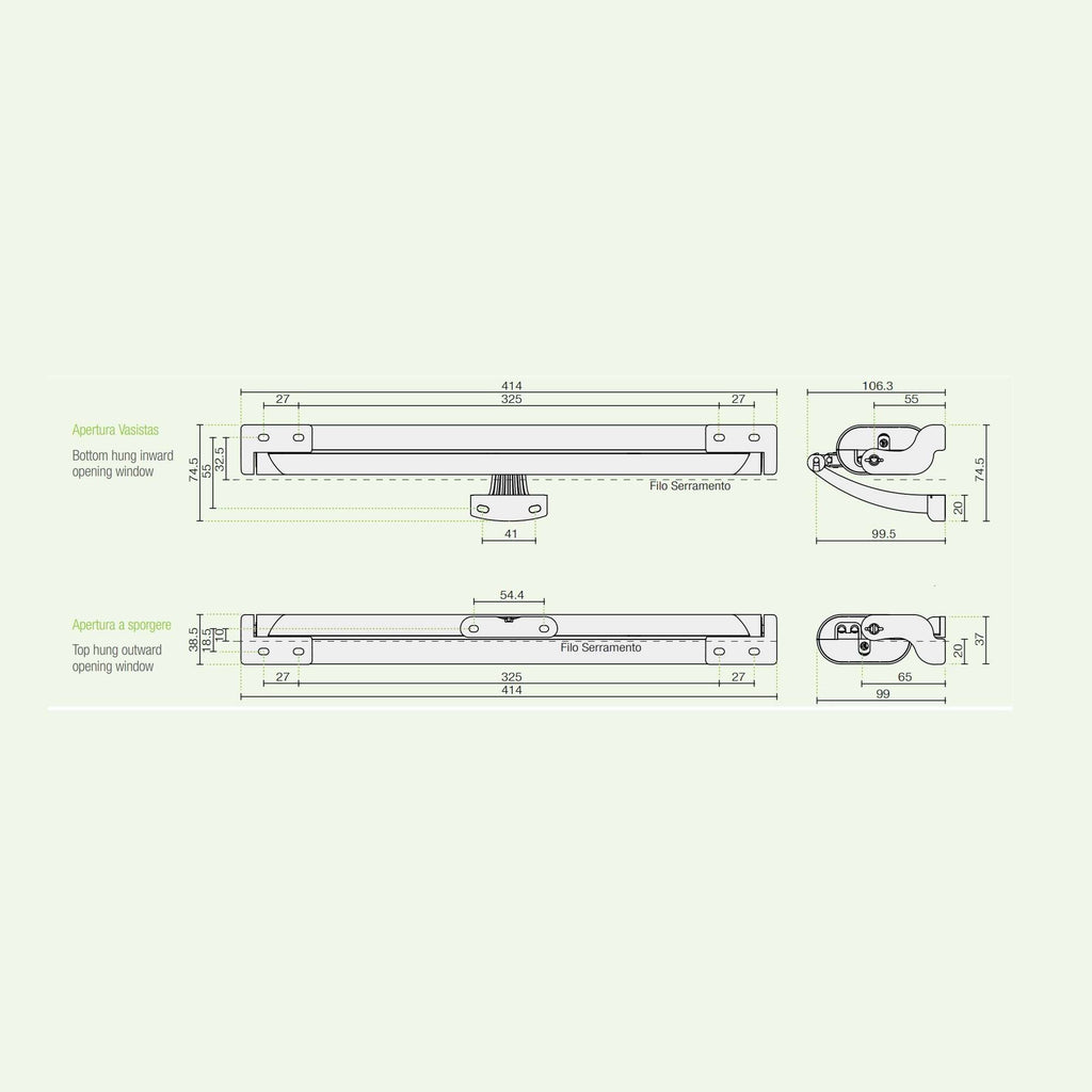 - AFFIDABILE: Le staffe di supporto consentono all'attuatore di oscillare e accompagnare il movimento della finestra.