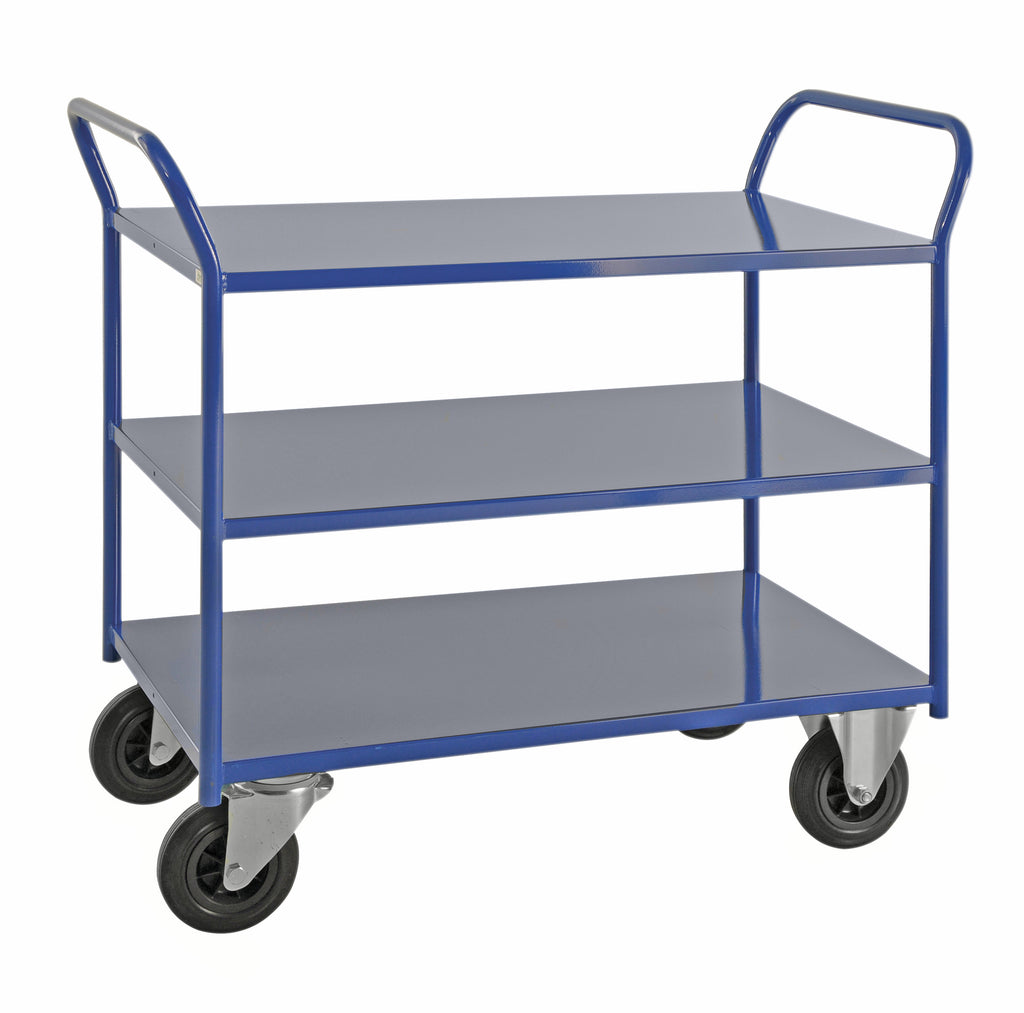 Carrello robusto completamente saldato in lamiera di metallo senza bordo, 3 ripiani. Ideale per oggetti pesanti.
