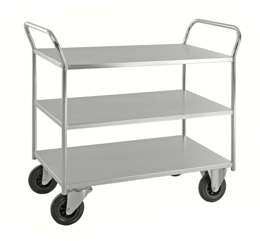 Carrello robusto completamente saldato in lamiera di metallo con bordo, 3 ripiani. Ideale per oggetti pesanti. Elettro galvanizzato