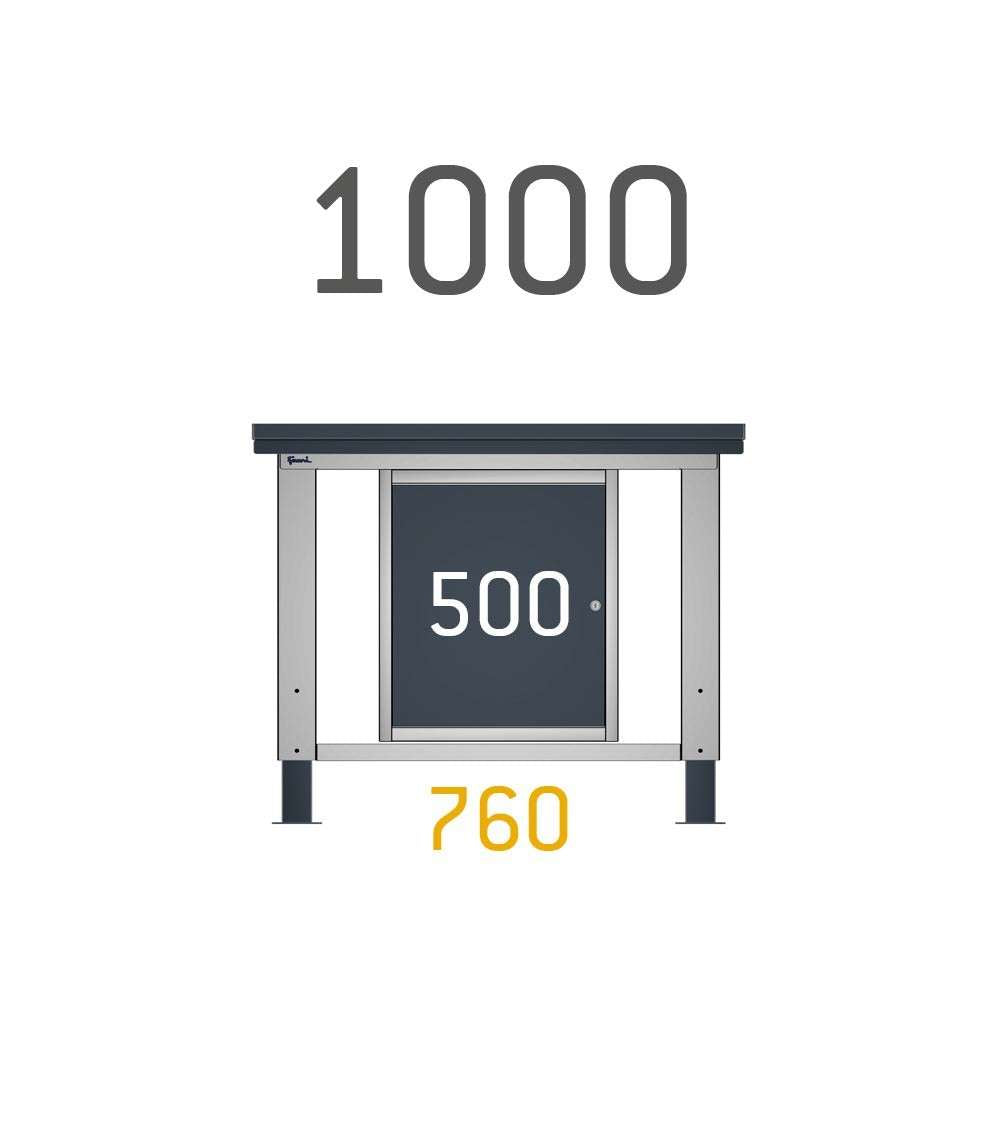 La struttura è realizzata in acciaio, qui in versione antracite RAL 7016 + grigio RAL 7035, disponibile anche in blu RAL 5012. Inoltre sono disponibili anche la versione con un cassetto + una porta, con solo tre o quattro cassetti, oppure con solo una porta. In questo modo potrai comporre il banco da lavoro secondo le tue esigenze!