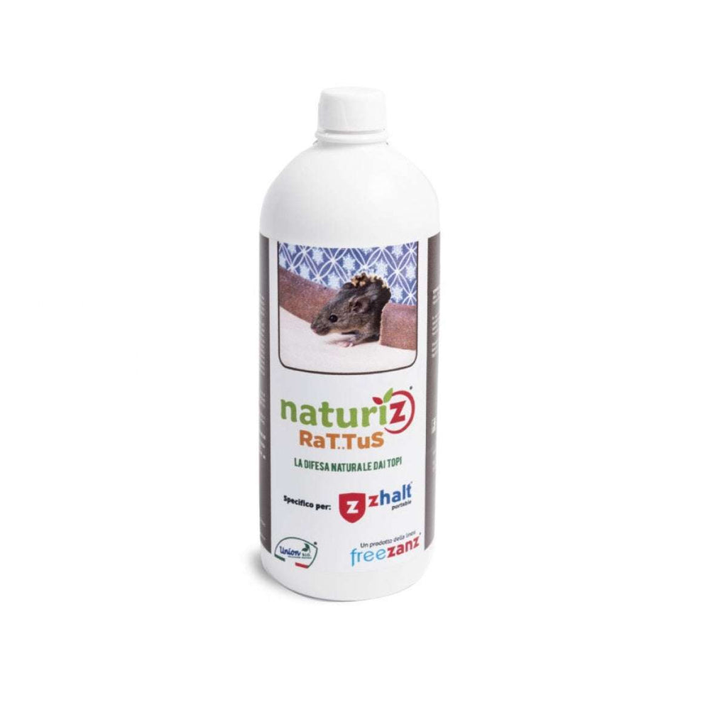 Naturiz RaT..TuS è un formulato naturale ideato e realizzato per tenere lontani i topi. Il formulato svolge un'azione fisica particolarmente sgradita ai roditori che si tengono lontani dalle zone trattate. Rispetta l'uomo, gli animali e la vegetazione. Naturiz RaT..TuS è stato appositamente formulato per Zhalt Portable che diffonde il prodotto potenziandolo e riducendo le dosi.