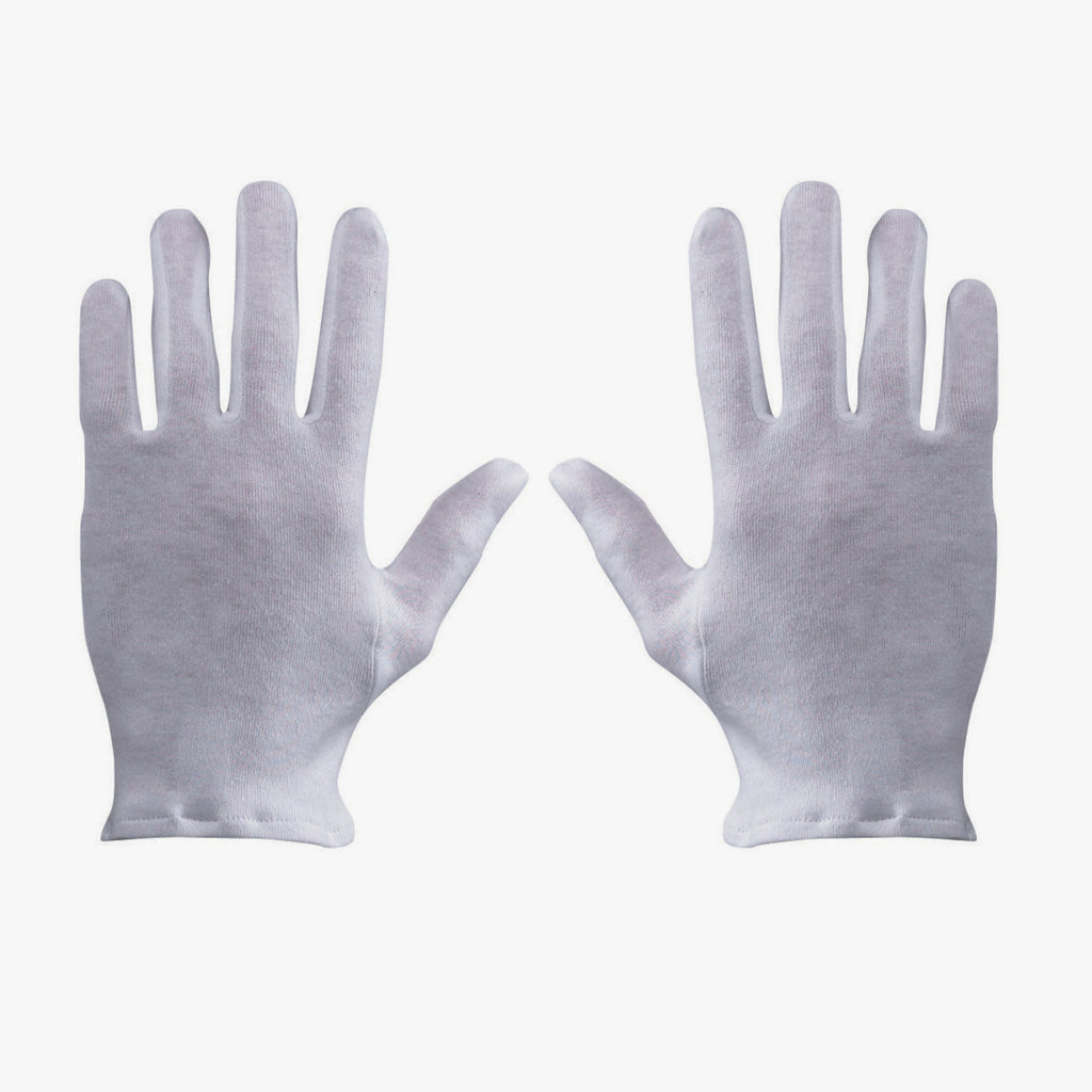 Cotone a maglia, dita a soffietto, leggero, bianco, lavorazione cucita, bordoorlato.Lunghezza 220mm.