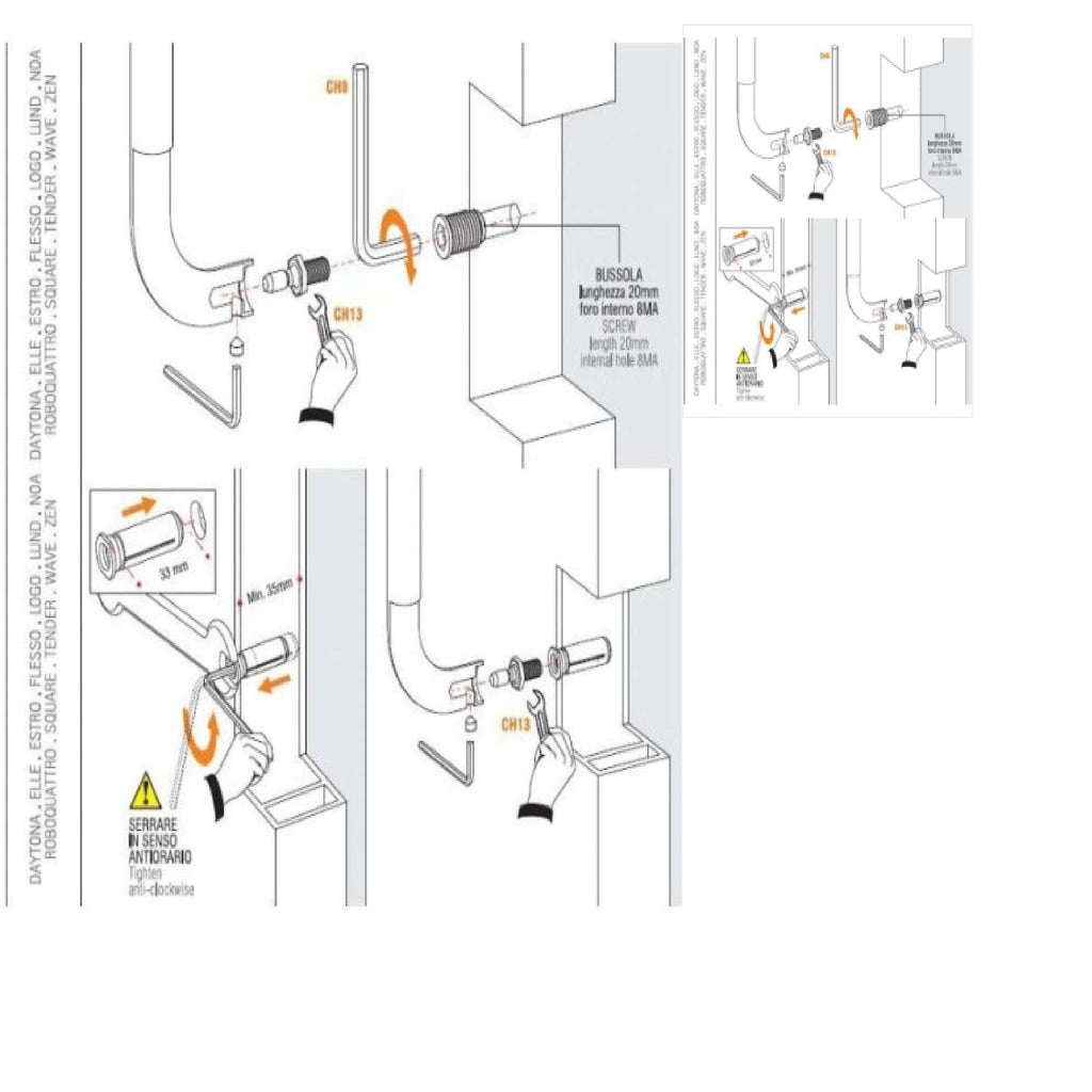Kit di installazione realizzato in acciaio con modalità d'installazione non passante per maniglioni singoli. Questo kit di installazione è compatibile solo con maniglioni Colombo Design.