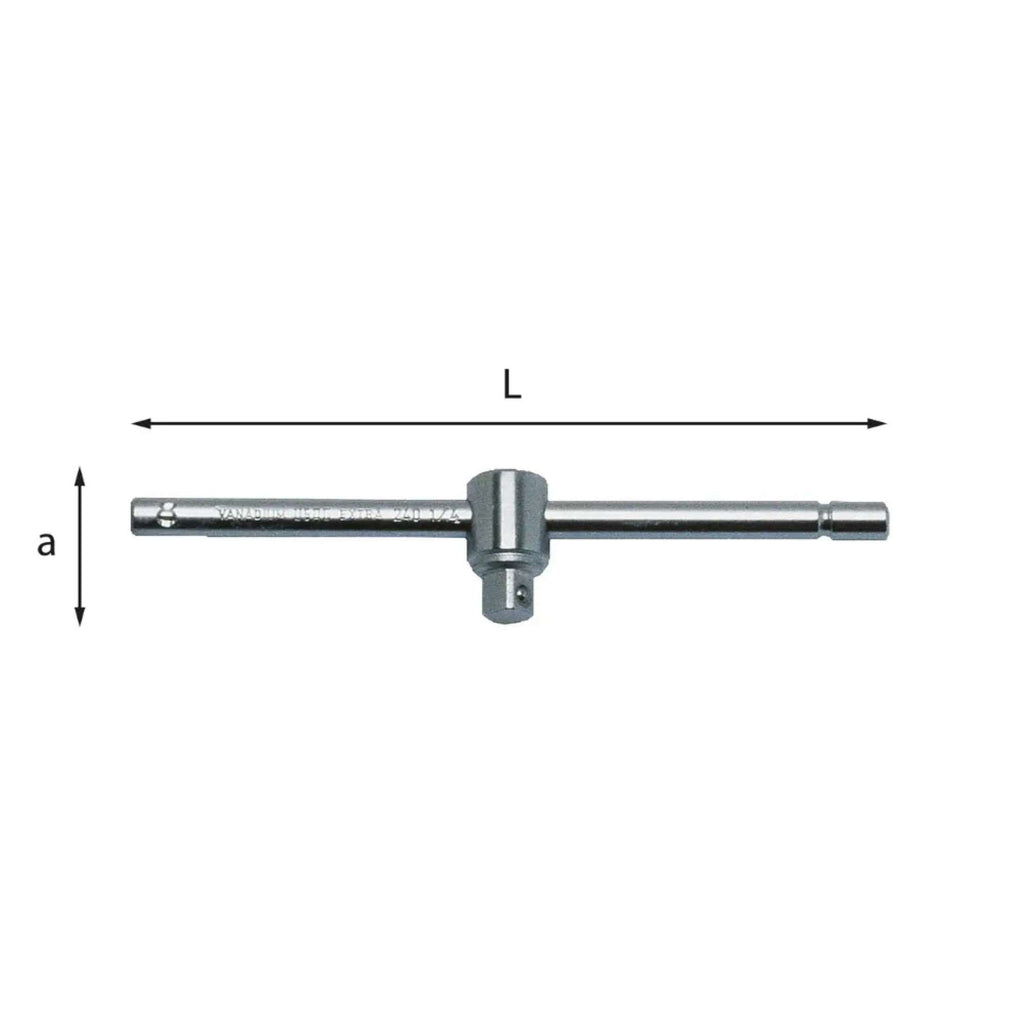 Leva a T con attacco quadro scorrevole in acciaio cromo vanadio 240 1/4 N Usag
