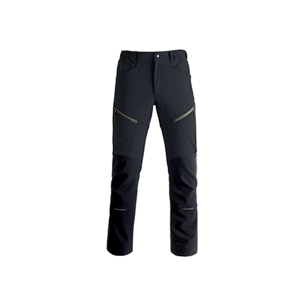 Pantaloni tecnici da lavoro in resistente tessuto elasticizzato che favorisce i movimenti, dotati di ghetta protettiva interna che limita la penetrazione di detriti. Il tessuto di questo modello tecnico di pantaloni da uomo ha un finissaggio esterno "water repellent" in grado di far scivolare l'umidità sulla superficie.