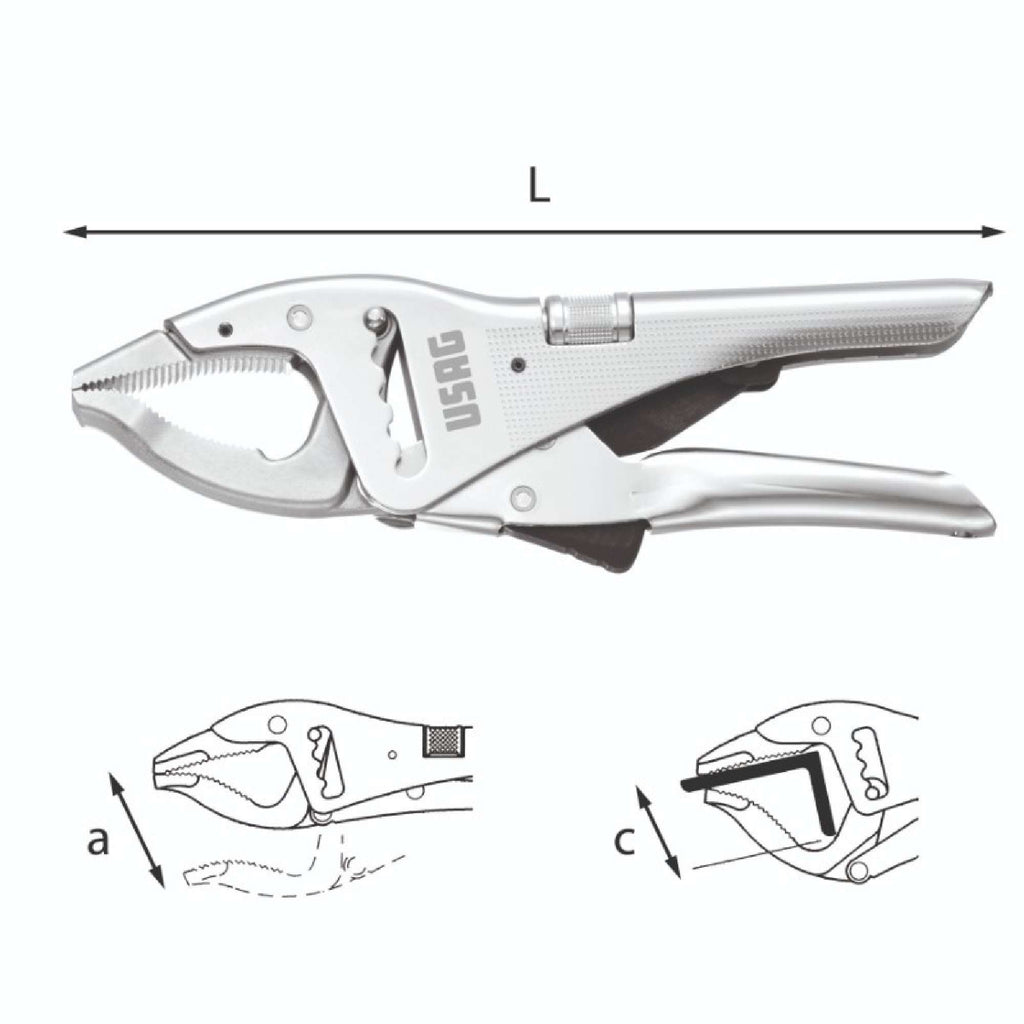 Pinza regolabile autobloccante a cremagliera con ganasce lunghe 250mm - Usag 135 B U01350510