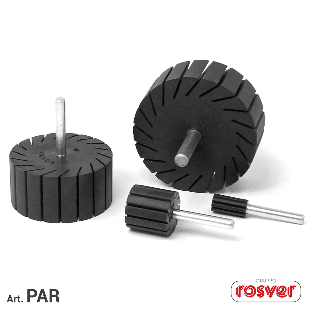 Rulli in gomma ad espansione centrifuga, montati generalmente su utensili portatili, per lavori di finitura, sbavatura, smussatura.