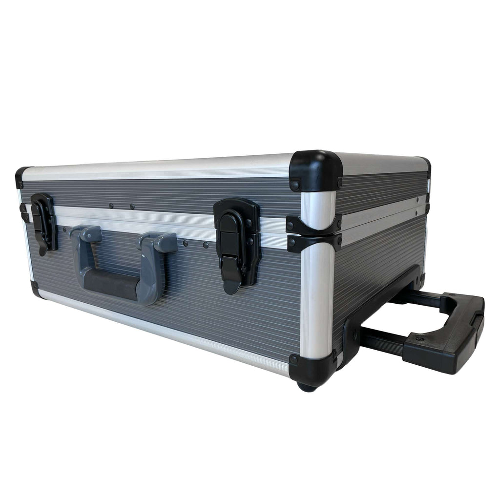 Il trolley in alluminio con ruote integrate e manico telescopico rende il trasporto estremamente comodo, anche su superfici irregolari, ed è perfetto per ambienti dinamici come cantieri, officine mobili o interventi a domicilio.